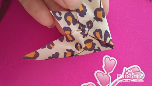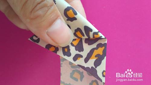 把两端按中线向中间对折(如图),用手捏好对齐,用针线沿下方缝好固定(如图)。