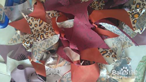 用剪刀剪掉多余的部分(如图),用同样方法制作若干个三角(如图)。