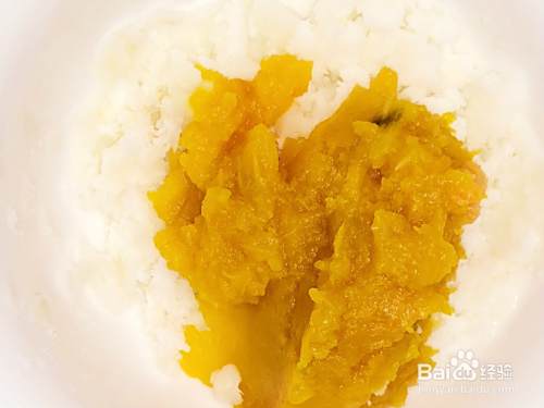 南瓜泥放入山药泥中