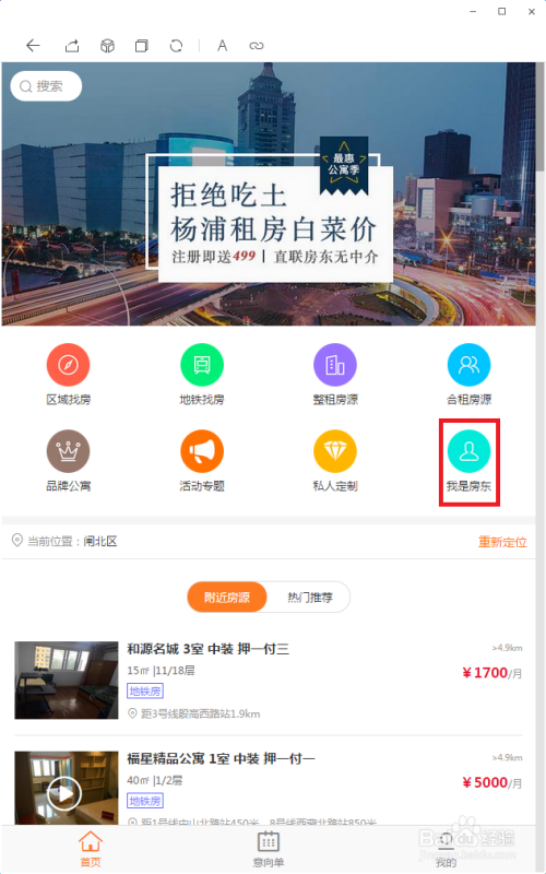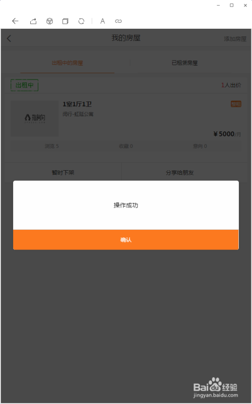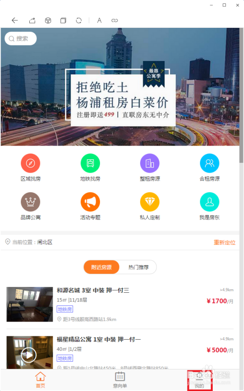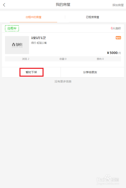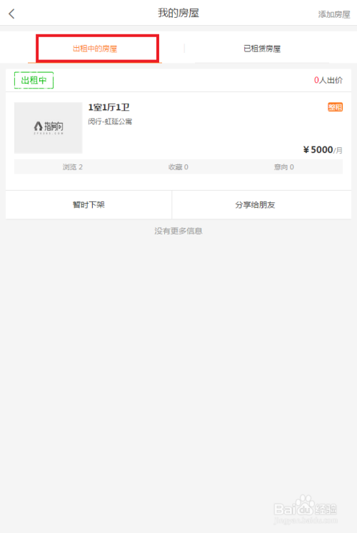 点击下方“我的房屋”按钮,查看所上传的房源信息