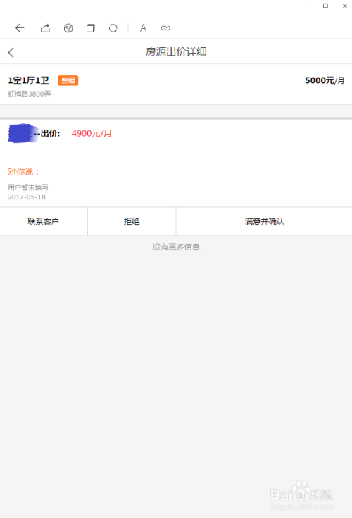 房东对某一“出价”或“当面签约”反馈为“同意”后,其他未处理的“出价”和“当面签约”信息将自动作废,同时,此房源标识为“已出租”并自动下架。