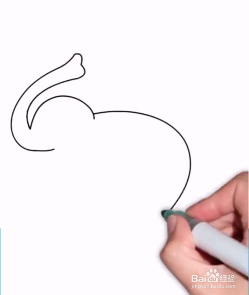 首先画出小象的长鼻子,头部轮廓,身躯轮廓,如下图所示。