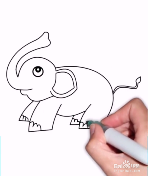 最后画出小象鼻子上的褶皱和耳朵上的褶皱,如下图所示。这样小象就画好了。
