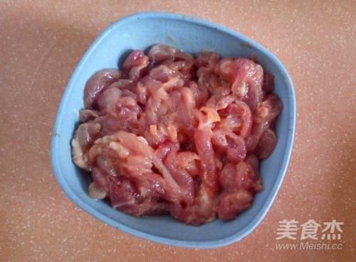1瘦肉切细条,加入淀粉、食盐、蚝油腌制备用
