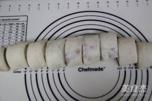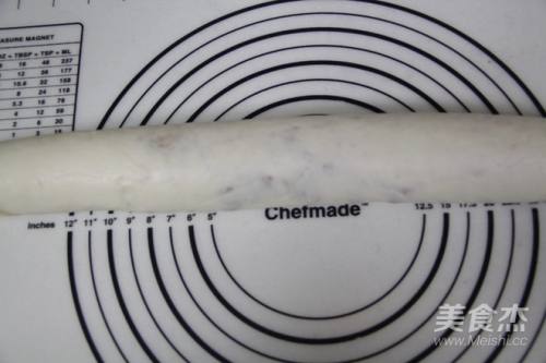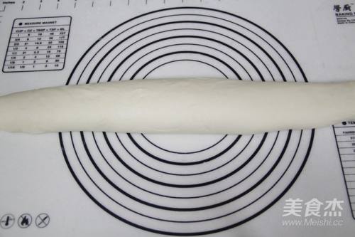 8然后,把面皮从上往下卷成条状