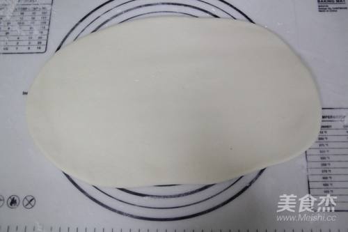 10把松弛好的面团,用擀面仗擀成5毫米厚的长方形