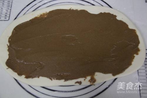 7将麻酱馅均匀的抹在面皮上