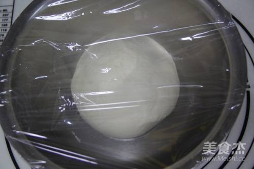 5面皮混合成团,揉至光滑状态,用保鲜膜封好,静置20分钟