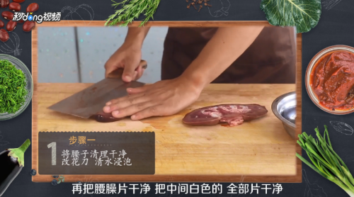将腰子清理干净,改花刀,清水浸泡,把中间白色的全部片洗干净。