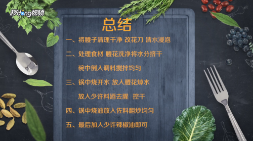 锅中烧开水,放入腰花焯水,放入少许料酒去腥,控干,锅中烧油放入佐料翻炒均匀,加入少许辣椒油。