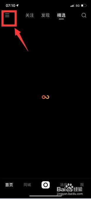 进入快手APP,如图:首页的活动入口已消失不见;点击左上角的图标;