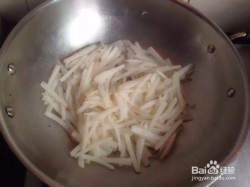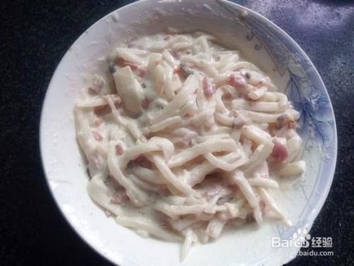 炒好的肉粒加到粉浆里拌匀,趁热把萝卜丝加入粉浆拌匀。