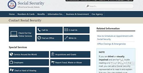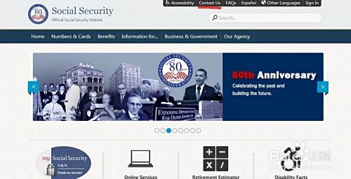 SSN美国社会安全号码要到SSA美国社会安全部门现场办理,所以事先要在SSA官方网站上查询附近的SSA办公厅及工作时间。如图所示,在官网页面点击Contact Us