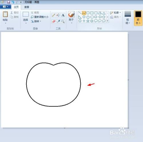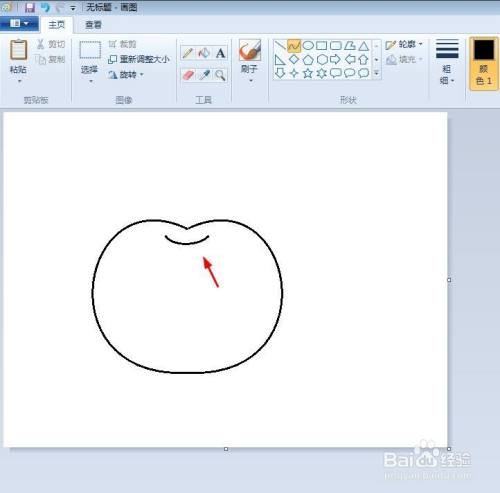 第三步:这样苹果的轮廓就画好了,在下图所示的位置,画出一个短弧线。