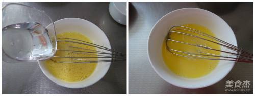 2鸡蛋用蛋抽搅打均匀,加入相当于4个鸡蛋重量的凉开水搅匀,不要用冷水哦,不然也容易有气泡(凉开水的量一般是鸡蛋的1.5倍-2倍,水越多蛋羹越水嫩)