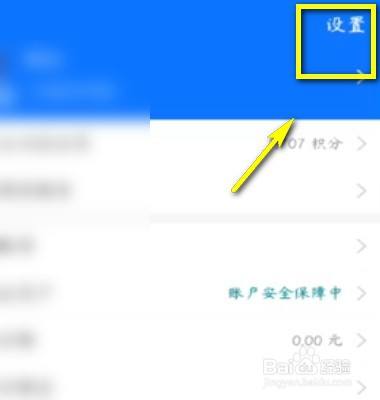 打开“支付宝”,点击“我的”。在页面右上角点击“设置”。