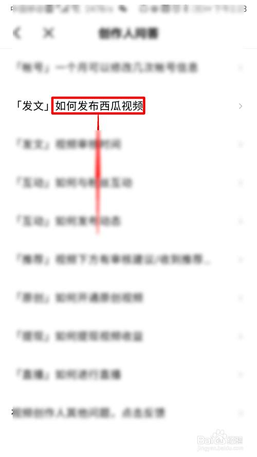 6在 右上 方向,找到 如何发布西瓜视频 。不同手机可能位置不一样。祝你好运。END