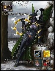 幻影刺客:出生于暗夜精灵的典狱长一族,由于受到暗夜主流社会的疏远,为了报复,Mortred发誓效忠天灾军团。她是力量和速度的完美结合,通过长年在阿森维尔森林的独处,学会了将身形融于周围的环境之中,每每在你最意想不到的时刻如幻影般出现。她精准而致命的攻击使她成为天灾军团极为重要的一员。这也就是为什么她被称为幻影刺客(Phantom Assassin)。