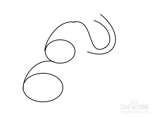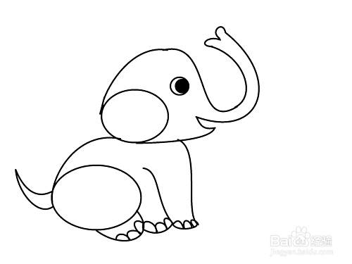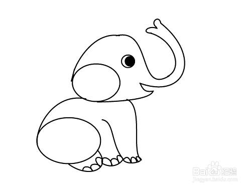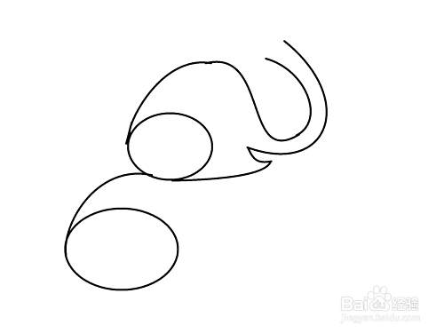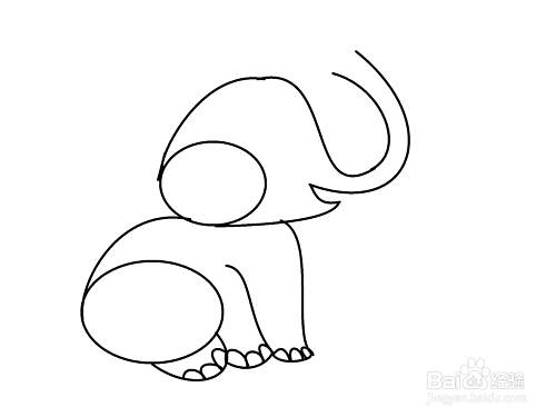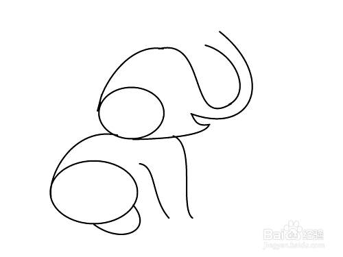 2 画出头部,画好长长的鼻子。把嘴巴也画弧来,如图所示。