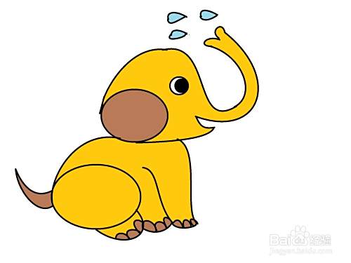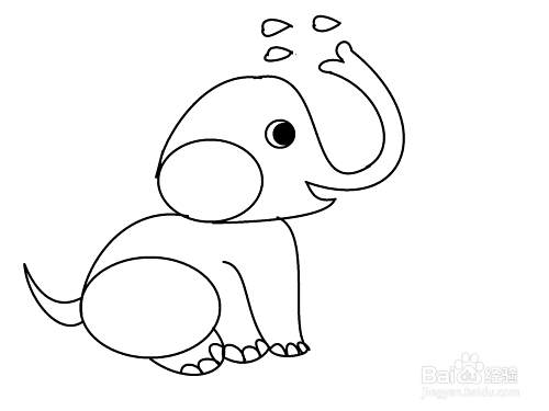 4 画出鼻子上喷出的水滴,最后涂上颜色即可。
