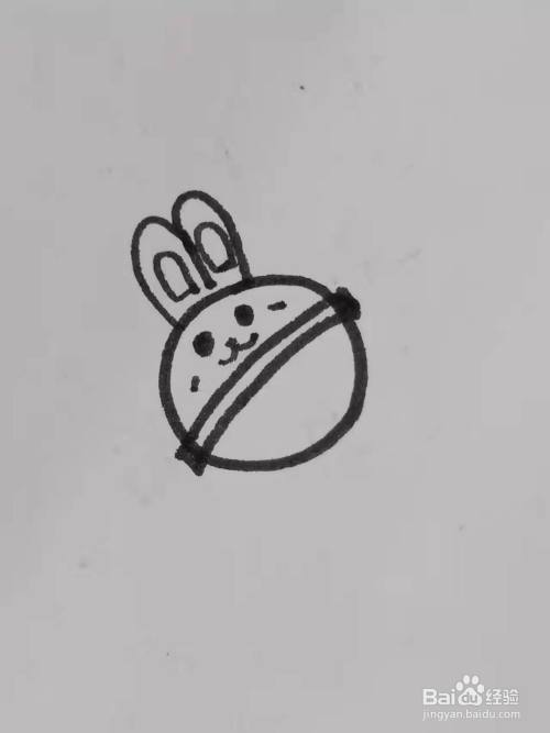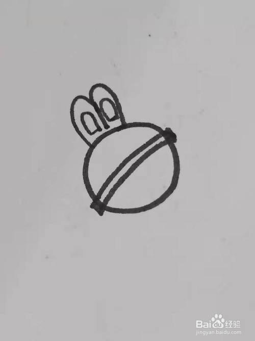 用勾线笔在圆形的上面画两个耳朵的部分。