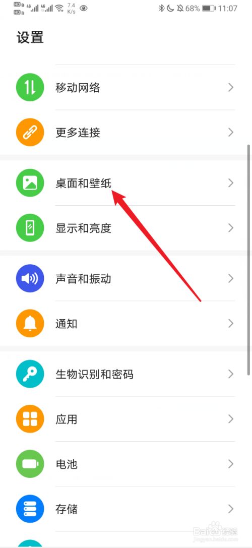 1、首先打开华为手机自带的设置App,点击进入“桌面和壁纸”一栏。