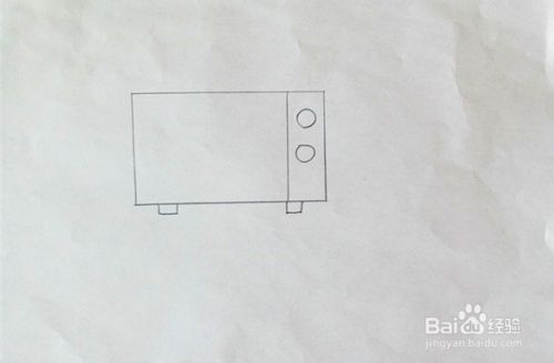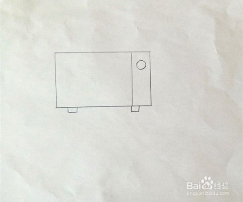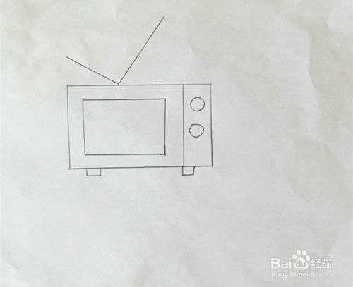 在长方形的下面,左右两边各画一个小长方形,代表电视的脚。