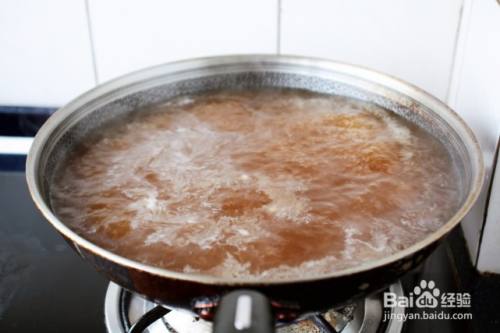 然后把骨汤煮开,我们也可以直接用煮牛肉的汤和面汤混合。