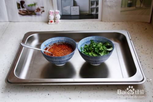 接下来准备适量辣椒油,一些葱花香菜碎,就可以了。
