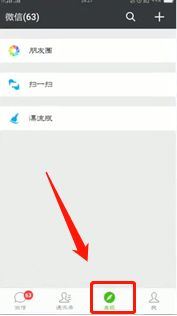 首先我们需要做的第一步就是打开手机微信,进入发现界面,然后在点击上方朋友圈功能选项。