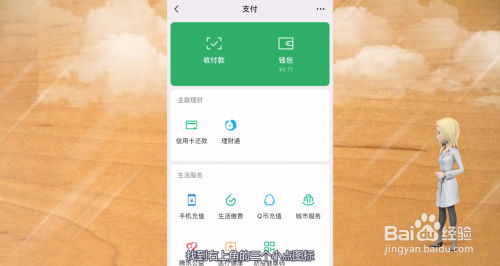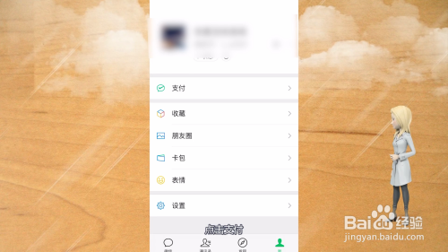 在微信中,找到支付选项,点击它进入支付的界面中。