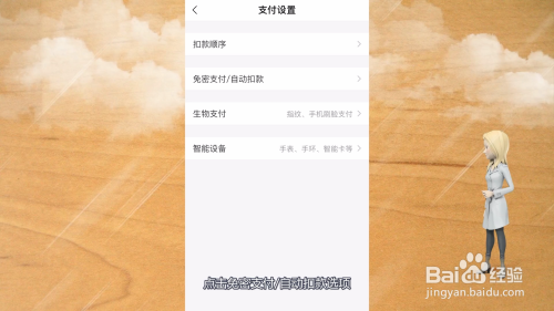 在支付设置界面中,点击免密支付/自动扣款选项,即可取消自动续费。