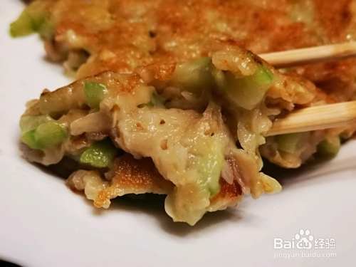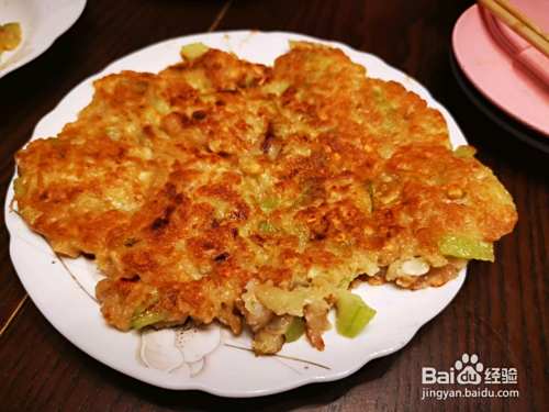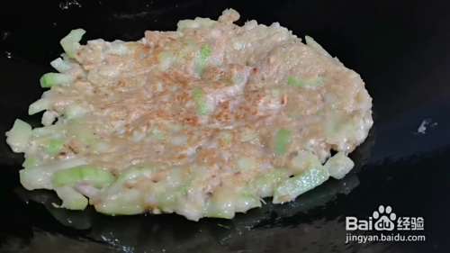 中下油,调中小火,放入一盘量秋瓜烙,煎至两面金黄