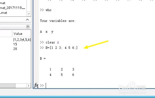 对于矩阵赋值再说说,比如B=[1 2 3;4 5 6;],这结果如下,显然,使用分号进行换行。