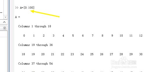 其中可以用:来表示,如A=[0:100],表示0到100之间的数赋值给矩阵A