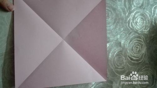 第一步:将纸对折,如图1。再对折一次,打开,如图2.