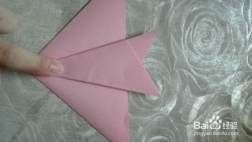 第四步:再将左侧的尖角折好,反过来放置,如图所示。