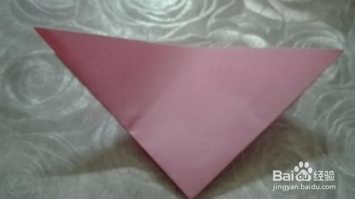 第二步:将纸折成双三角形,并倒放,如图所示。