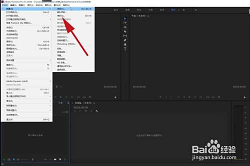 打开Adobe Premiere Pro ,如图依次点击文件-新建-序列,新建一个序列。