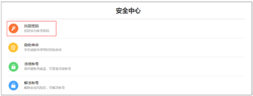 1、从安全中心入口找回密码,请按如下步骤操作: