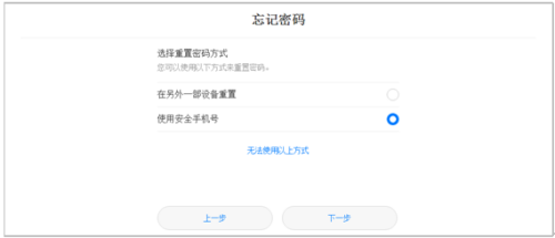 3.3.1 选择重置密码方式:在另外一部设备重置