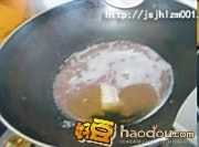 5将过滤好的汁放在锅中,加入适量的色拉油和白糖