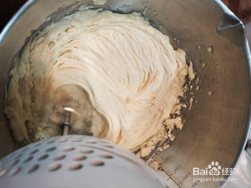 第三步:把糖粉放入黄油中,准备打发黄油。