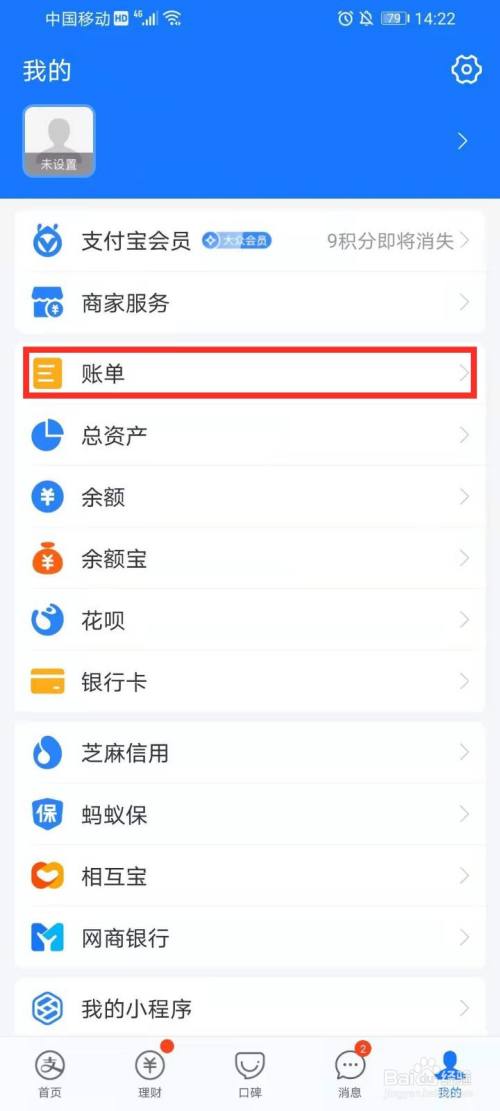 点击【账单】选项,进入账单界面。