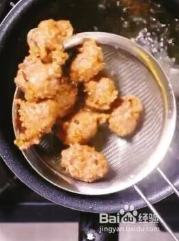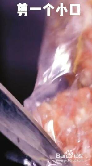 找一个结实的保鲜袋,放入肉馅,剪一个小口,这样一挤一掐,丸子就成型了,炸至金黄出锅。