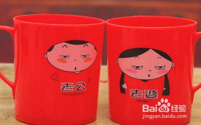 浓情蜜意的物品,买一些显得夫妻感情很浓厚的物品,如带有老公老婆图案的杯子。