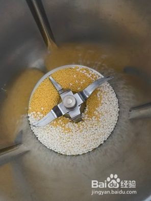 把小米和糯米放入干燥的主锅,3分钟速度10打磨。期间暂停一次把锅壁的部分用刷子弄到锅底