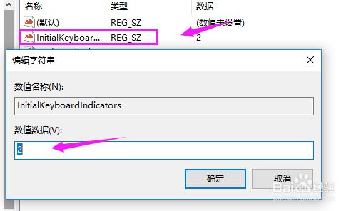 接着我们双击【InitialKeyboardIndicators】,将数值更改为【2】,到这重启下电脑,基本可以解决问题!