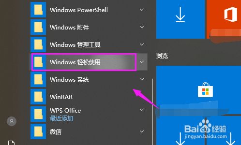 接着我们就在下拉中找到并且快速的点开下【windows轻松使用】,如图。