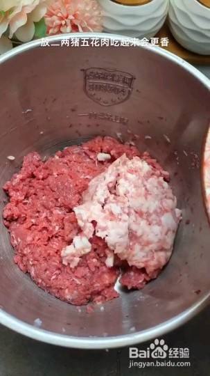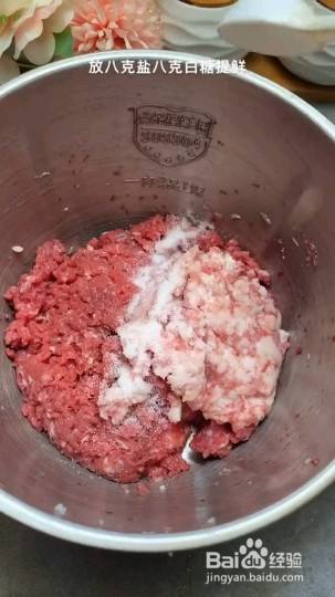 牛肉剁成肉馅,放二两五花肉更香;放8克盐8克白糖,5克黑胡椒12克蜂蜜